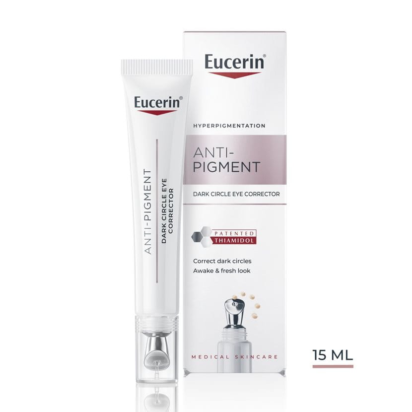 Az Eucerin Anti-Pigment szemránckrém többféle erőteljes hatóanyagot tartalmaz, amelyek mindegyike másképpen segíti a bőr ragyogóbbá tételét és a hiperpigmentáció csökkentését. A termék világosabbá és simábbá teszi a szem környékét. A friss és könnyű formula egy hatékony, szabadalmaztatott hatóanyagot, Thiamidolt tartalmaz, amely a hiperpigmentáció kiváltó okára hatva csökkenti a melanintermelést. A fényvisszaverő pigmentek ragyogóvá teszik a szemkörnyéket, így a bőr megjelenése azonnal frissé és üdévé válik. A hialuronsav csökkenti a puffadást és kisimítja a finom ráncokat. Az oligopeptidek támogatják a bőr kollagénhálózatát, és ennek köszönhetően a bőr szerkezete megerősödik.