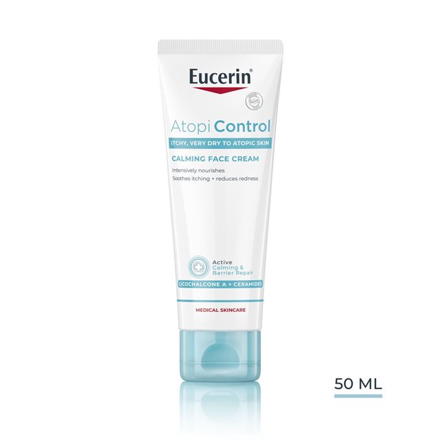 Az Eucerin AtopiControl arckrémet kifejezetten az atópiás bőr mindennapi ápolására fejlesztették ki, és gyulladásos, valamint a nyugodtabb, tünetmentes időszakokban is alkalmazható. Klinikailag és bőrgyógyászatilag bizonyítottan hidratálja, nyugtatja és csökkentheti a bőr szárazságot. A nem ragacsos formula bővelkedik a licochalcone-A és a keramid hatóanyagokban, így regenerálja és erősíti a bőr védőrétegét, enyhíti a feszülő érzést és viszketést.