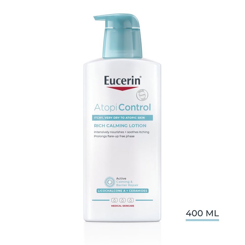 Az Eucerin AtopiControl testápoló egy napi használatú ekcémás testápoló, amelyet kifejezetten az irritált és viszkető bőr megnyugtatására és intenzív hidratálására fejlesztettek ki. A könnyen felszívódó, víz az olajban krém nyugtató hatású Licochalcone A-val, Ceramidokkal és Omega olajokkal gazdagított krém erősíti a bőr barrierjét, enyhíti a szárazságot és viszketést, és meghosszabbítja az atópiás dermatitisz fellángolásai közötti időszakot. Rendszeres alkalmazásával a bőr állapota érezhetően javul, a bőr puha és sima érzetű lesz.
