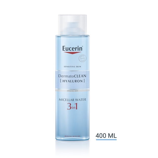 Az Eucerin DermatoCLEAN [HIALURON] 3 az 1-ben micellás arclemosó klinikailag és bőrgyógyászatilag bizonyítottan alkalmas még az érzékeny bőrre is.