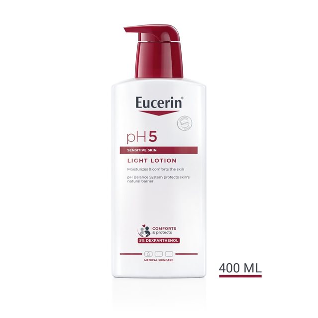 Védje és nyugtassa érzékeny bőrét Eucerin pH5 extra könnyű, hidratáló testápolóval, hogy bőre ellen tudjon állni a mindennapi stresszhatásoknak. Az 5% dexpanthenollal gazdagított testápoló nyugtatja és természetes módon hidratálja a bőrt, ezáltal azonnali enyhülést nyújt.