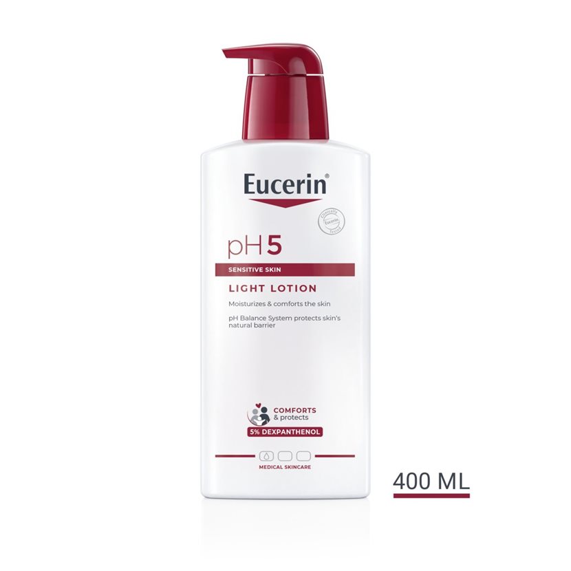 Az Eucerin pH5 termékeket kifejezetten úgy fejlesztették ki, hogy ötvözzék a gyengéd tisztítást és a kiváló bőrvédelmet, valamint a klinikailag bizonyított bőrtolerabilitást. Az Eucerin pH5 extra könnyű, hidratáló testápoló rendszeresen használható I-es típusú allergiára, például szénanáthára, hajlamos bőr esetén is.