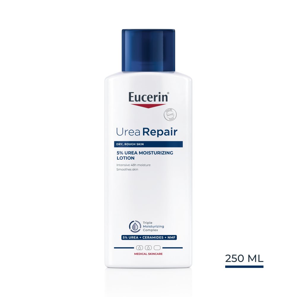 Az Eucerin UreaRepair 5% Urea hidratáló testápoló krém a száraz, érdes testbőrnek biztosítja a szükséges napi ápolást.