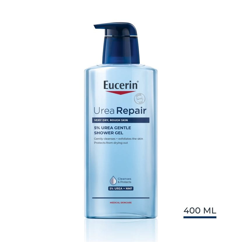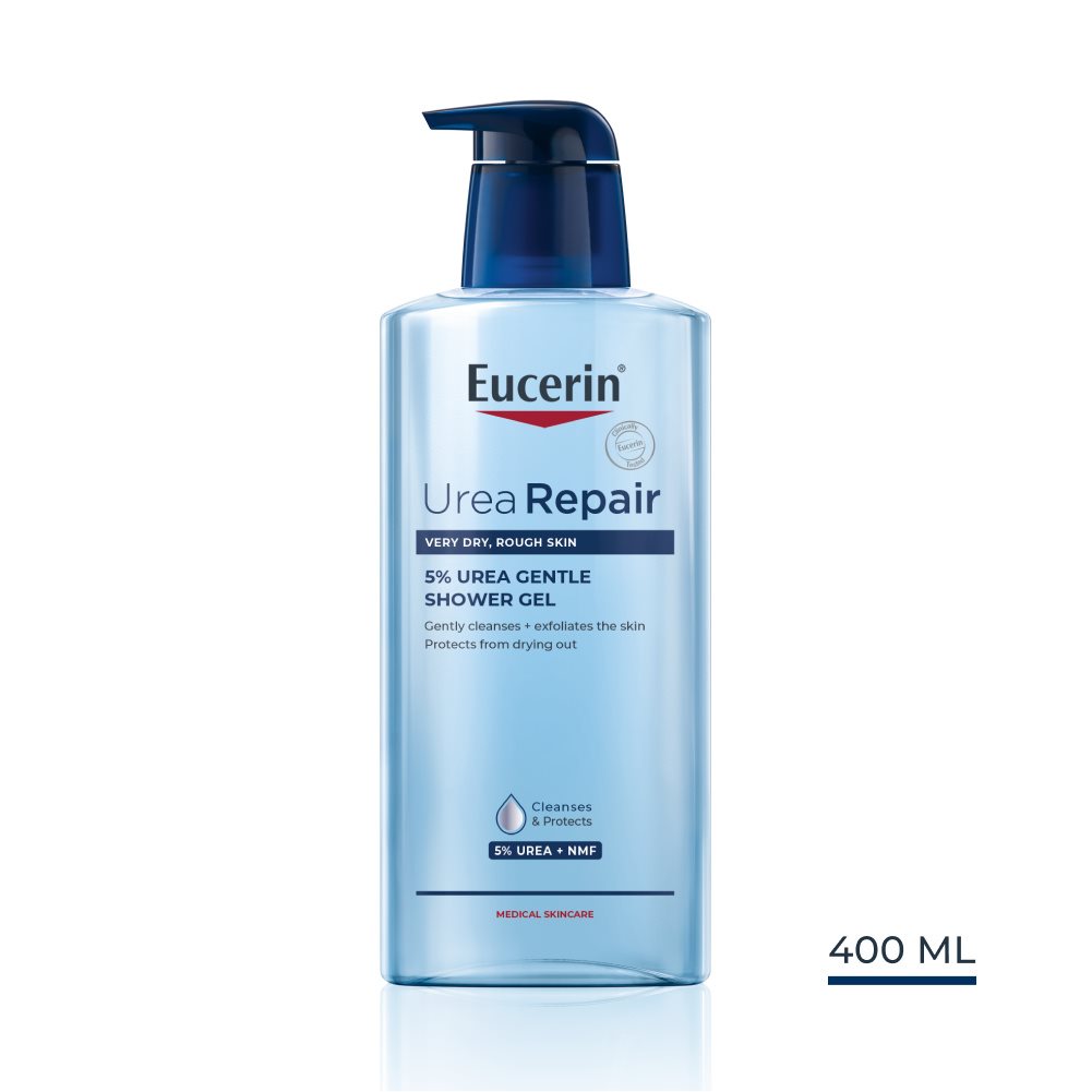 Az Eucerin UreaRepair 5% Gentle Shower Gel olyan szappan- és illatanyagmentes termék, melyet kifejezetten a nagyon száraz, érdes és irritációra hajlamos bőr napi tisztítására fejlesztettek ki. A hidratáló összetevők – az urea és a természetes hidratálók – különleges kombinációjával gyengéden tisztítja és radírozza az érdes bőrt, mégpedig anélkül, hogy károsítaná a bőr védőrétegét. A bőr észrevehetően simább lesz és a jóltápláltság, feltöltöttség érzetét nyújtja.